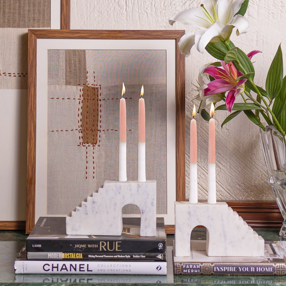 Halo Hurricanes – Set of Two Glass & Wood Candle Holders