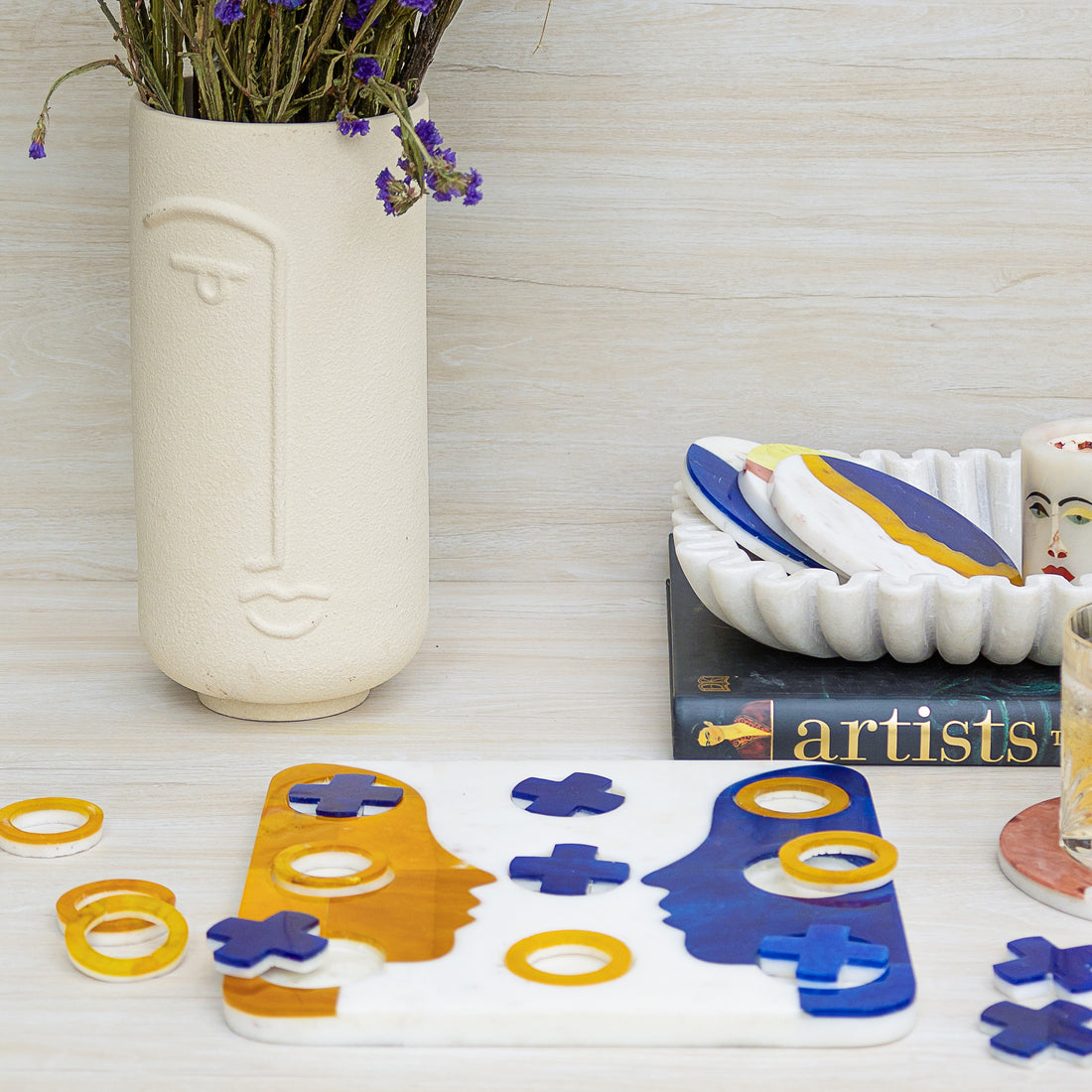 NATSUMI KNOTS - NATSUMI IVORYBLUE YELLOW MARBLE TIC TAC TOE GAME DECOR