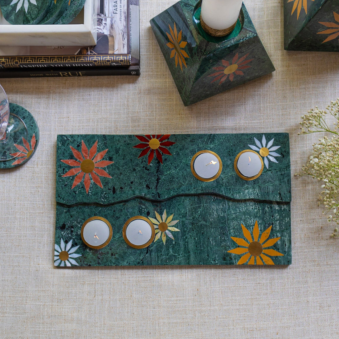 MAGNOLIA GREEN MARBLE MULTIPURPOSE PLATTER WITH TEA LIGHT