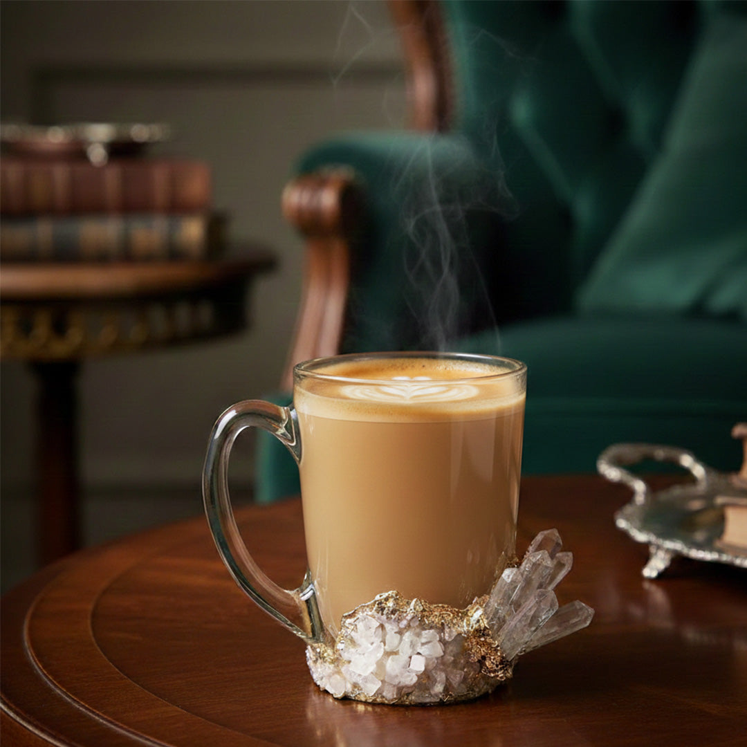 Online premium drinkware that can be considered a statement piece, like our regal Regan Mug, or gemstone style Amethyst Aura Mug or Rosé Quartz Chalice Glass Mugs. This collection is for those who see drinkware as an extension of their interiors, and beyond just mugs. They are meant to be tactile, sculptural and do more than just hold a beverage, because we stand for a sense of rarity with the products we display. Shop premium drinkware online that can be suitable for gifting, collecting, or just for drinking in style with your favorite beverage.