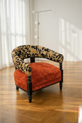 The Borghese Saffron Barrel Chair brings a luxurious blend of sculptural form and warm contemporary elegance. Its curved barrel silhouette wraps naturally around the body, while the rich saffron upholstery adds a vibrant yet refined character to any space. Supported by sleek wooden legs that ground the design with subtle sophistication, the chair offers both comfort and visual presence, making it an effortless statement piece for modern interiors.