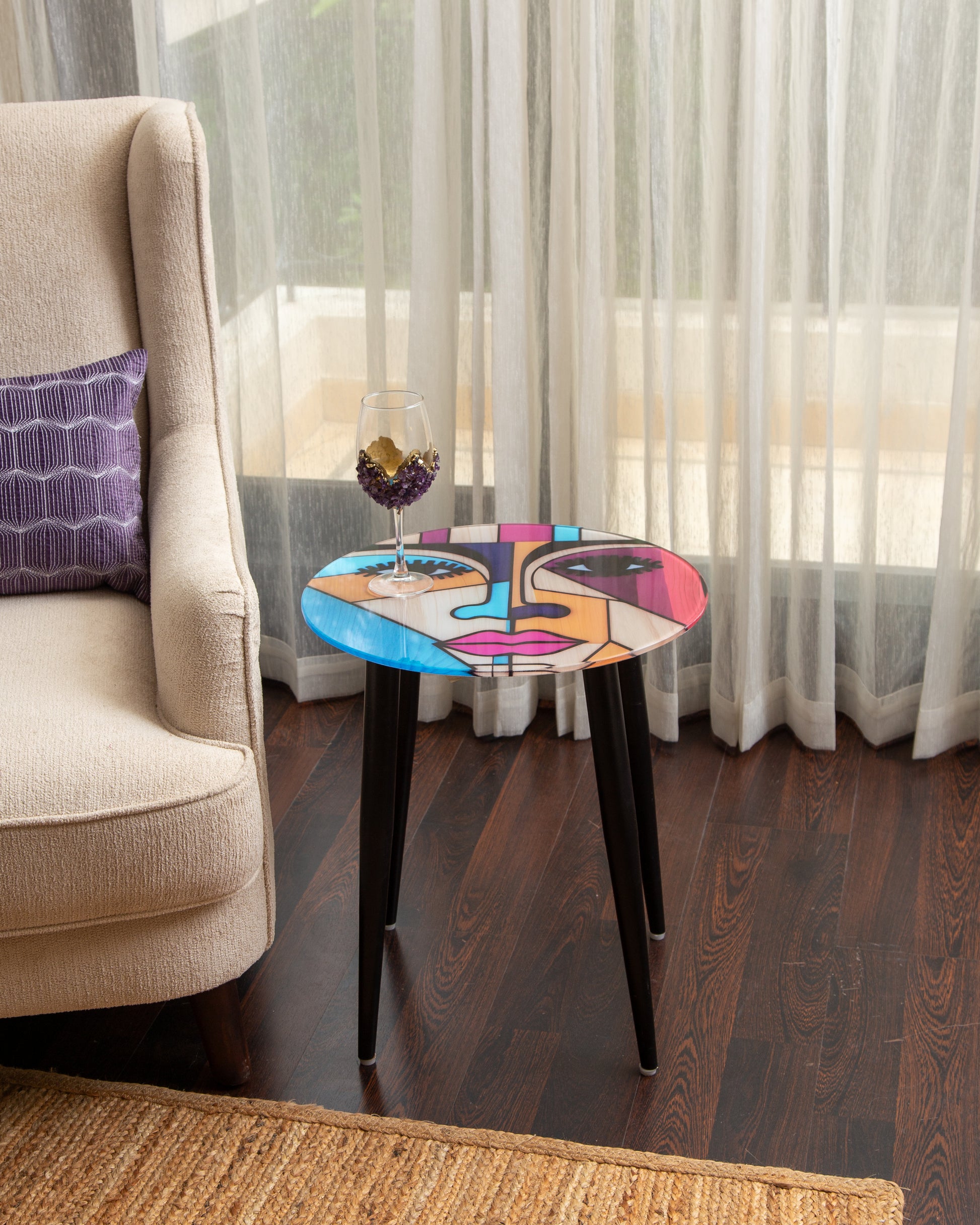 MONA - GLASS FACE PAINTED ACCENT TABLE