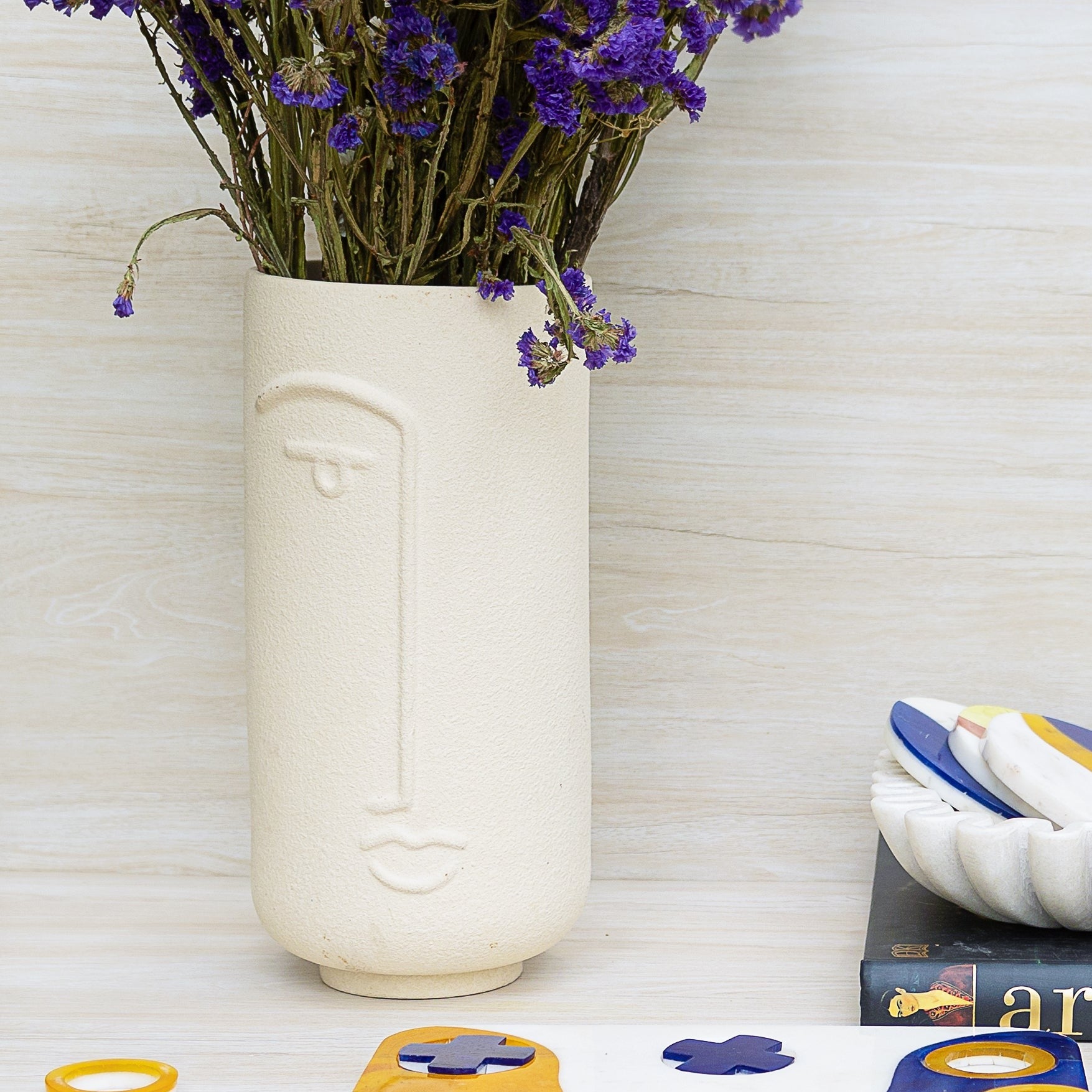 Adorned with intricately sculpted facial features, including serene eyes, graceful contours, and expressive lips, our ceramic vase captures the essence of emotion, Whether displayed as a standalone art piece or filled with vibrant floral arrangements, this vase adds a touch of elegance and personality to any room.