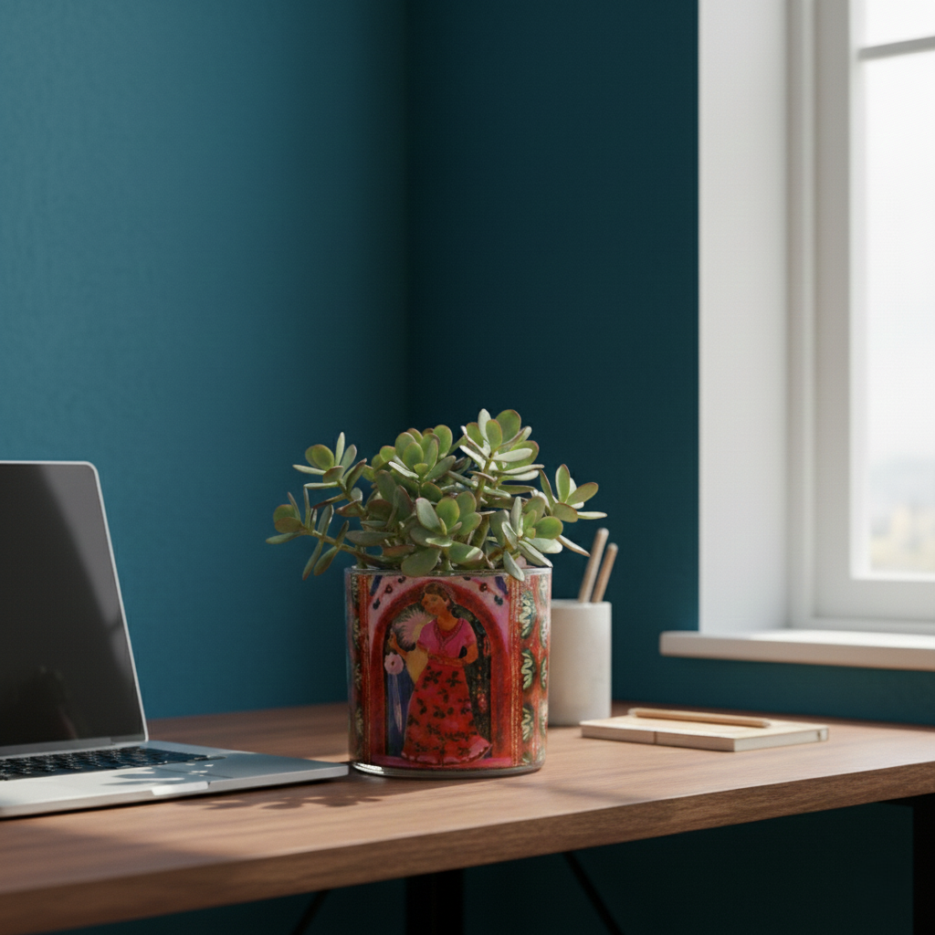 Frida Kahlo Hand-Painted Glass Pot - Mini Desk Planter
