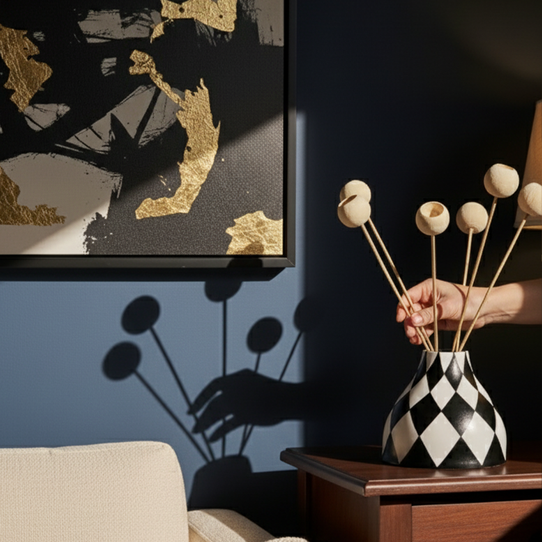 Astra captures aspiration in form, stretching toward the sky with a slender, elongated body. Its harlequin surface plays with light and shadow, symbolizing the duality of being grounded while reaching for the stars.