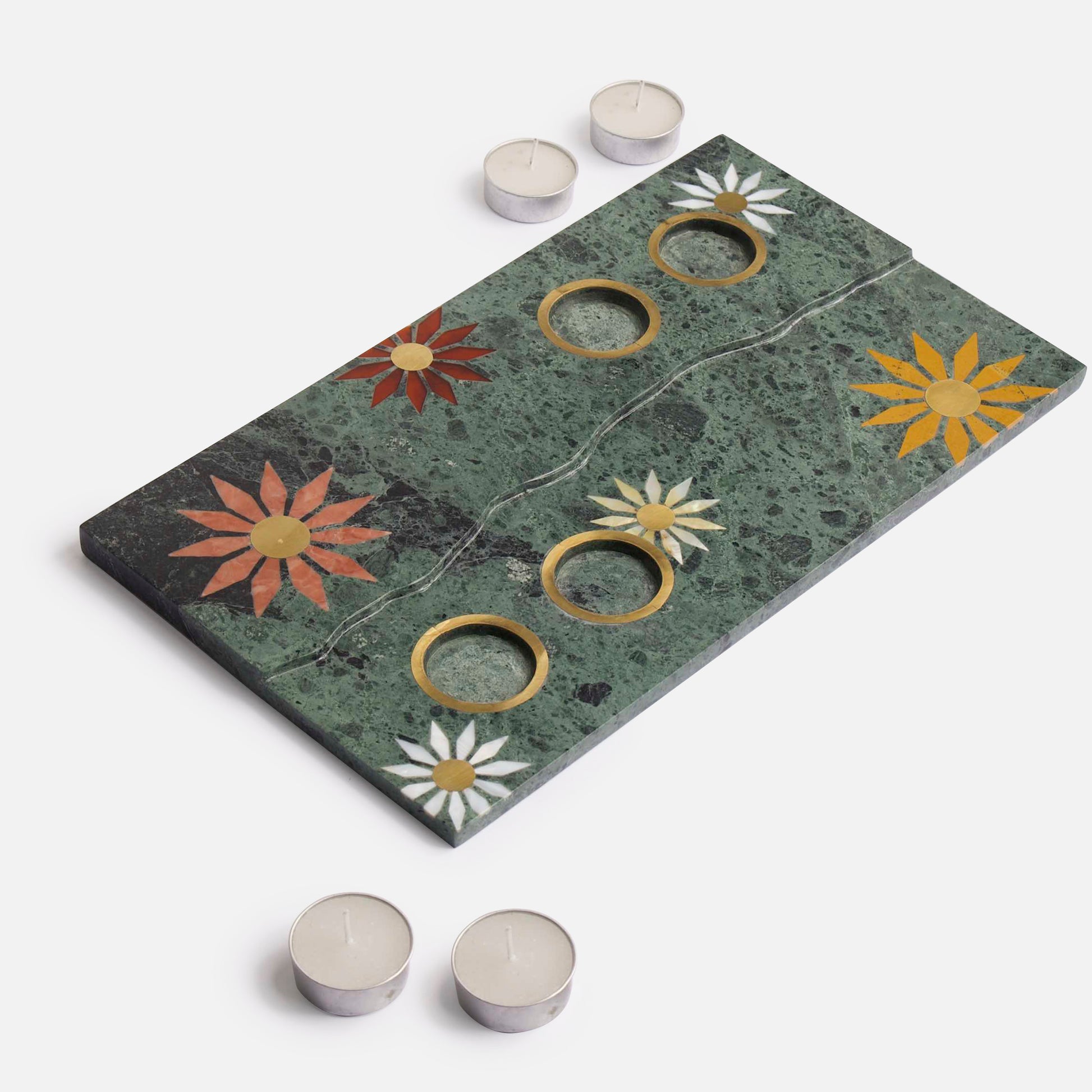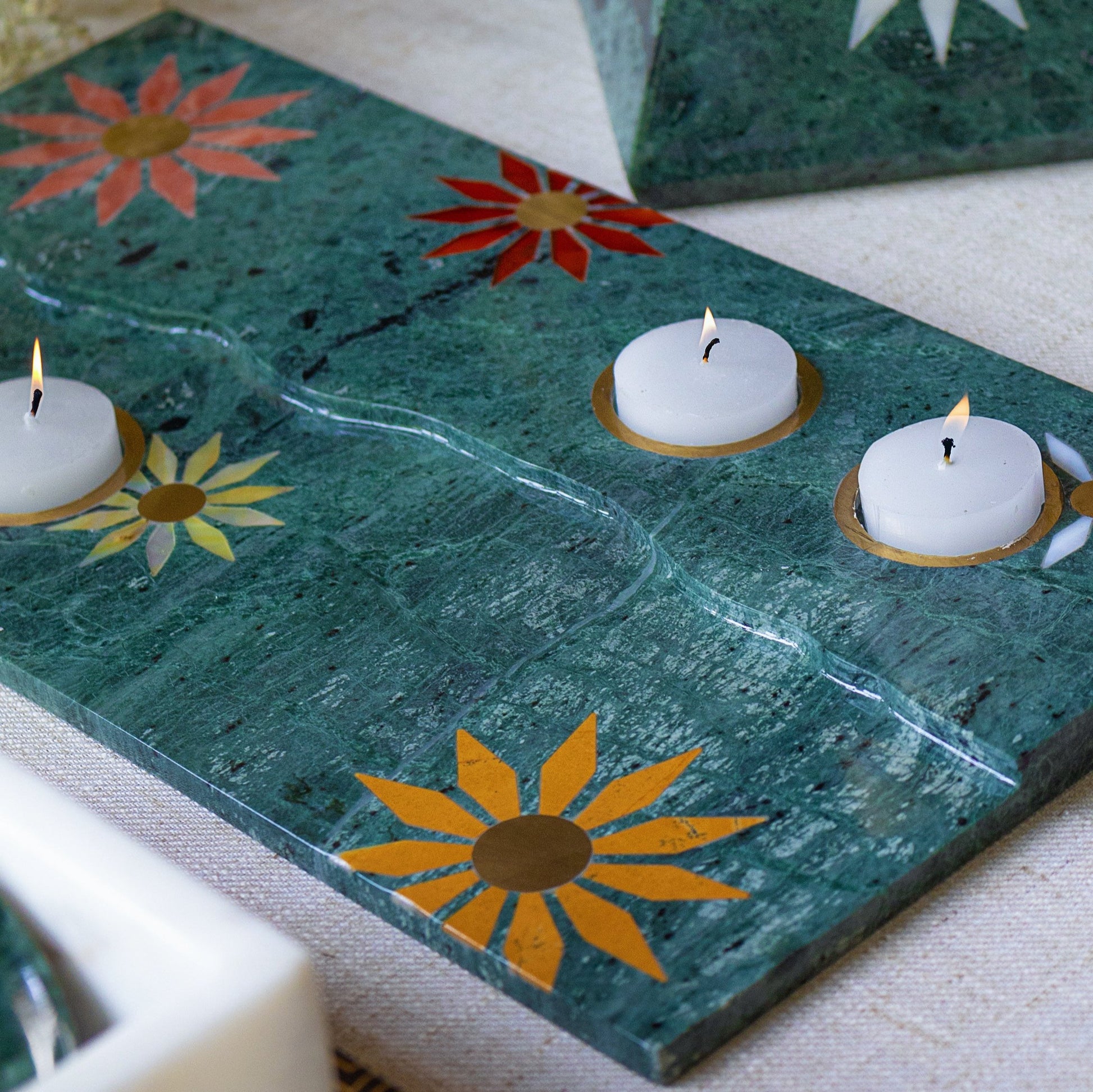 Whether you're hosting an intimate dinner party or simply enjoying a quiet evening at home, our Green Marble Multipurpose Platter with Tea Light sets the perfect stage for memorable moments. Embrace the beauty of natural materials and exquisite craftsmanship, and let this versatile platter transform your dining experience into an unforgettable journey of taste and ambiance.