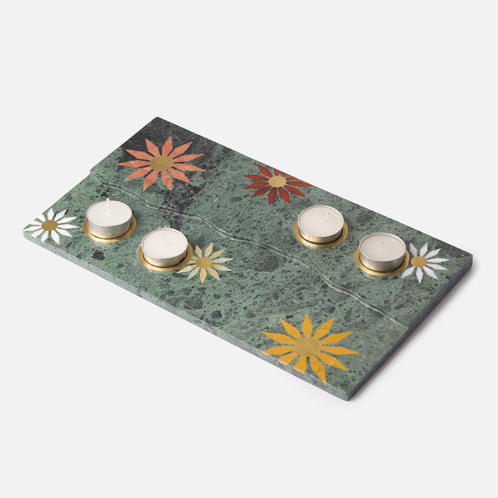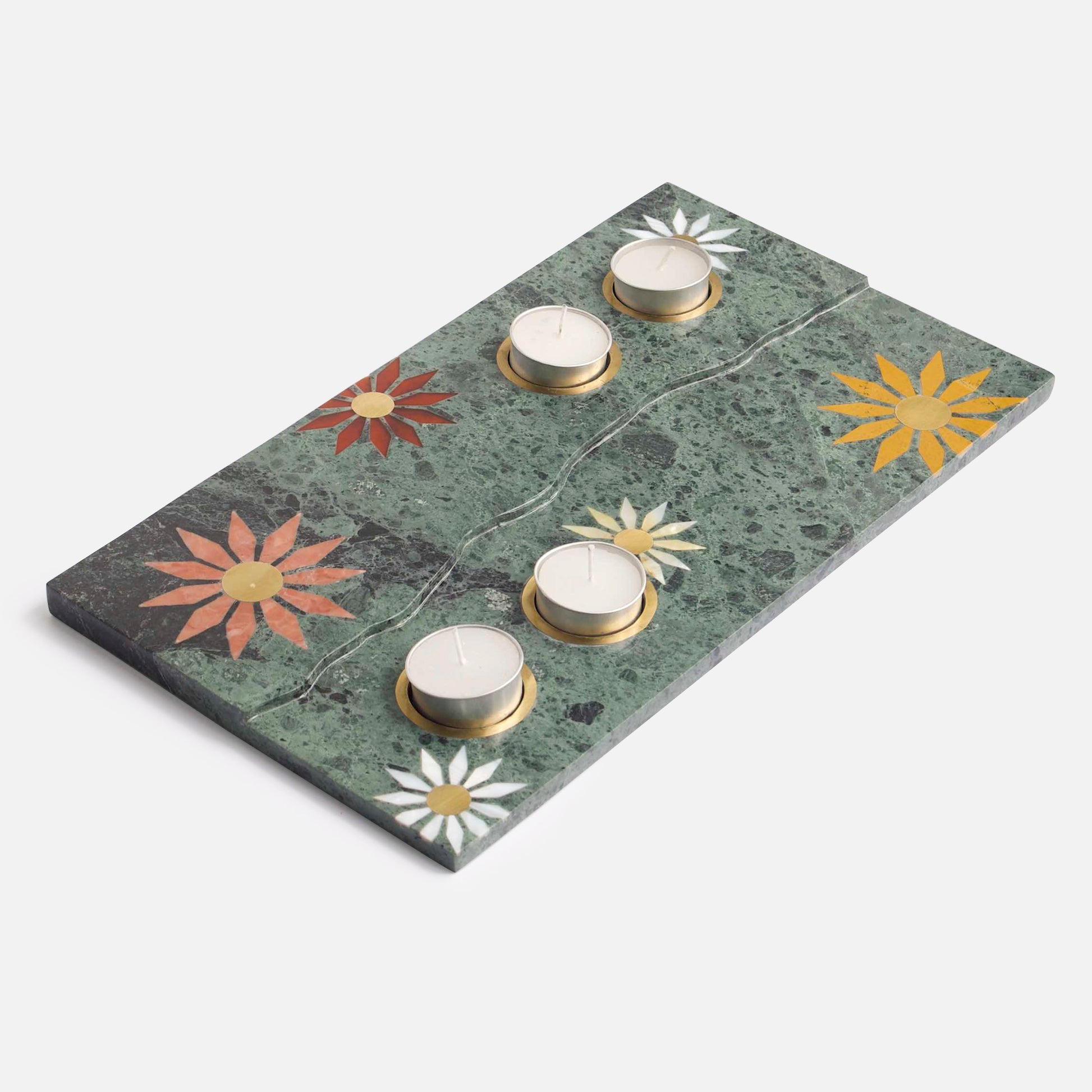 Crafted from luxurious green marble, each platter is a unique masterpiece, showcasing the natural veins and swirls that make marble a timeless symbol of elegance. What sets our tealight platter apart is its versatility. Not only does it serve as a stylish platform for presenting your favorite culinary creations, but it also doubles as a tea light & candle holder, allowing you to effortlessly transition from a delightful dining experience to a serene ambiance with just a flick of a switch.