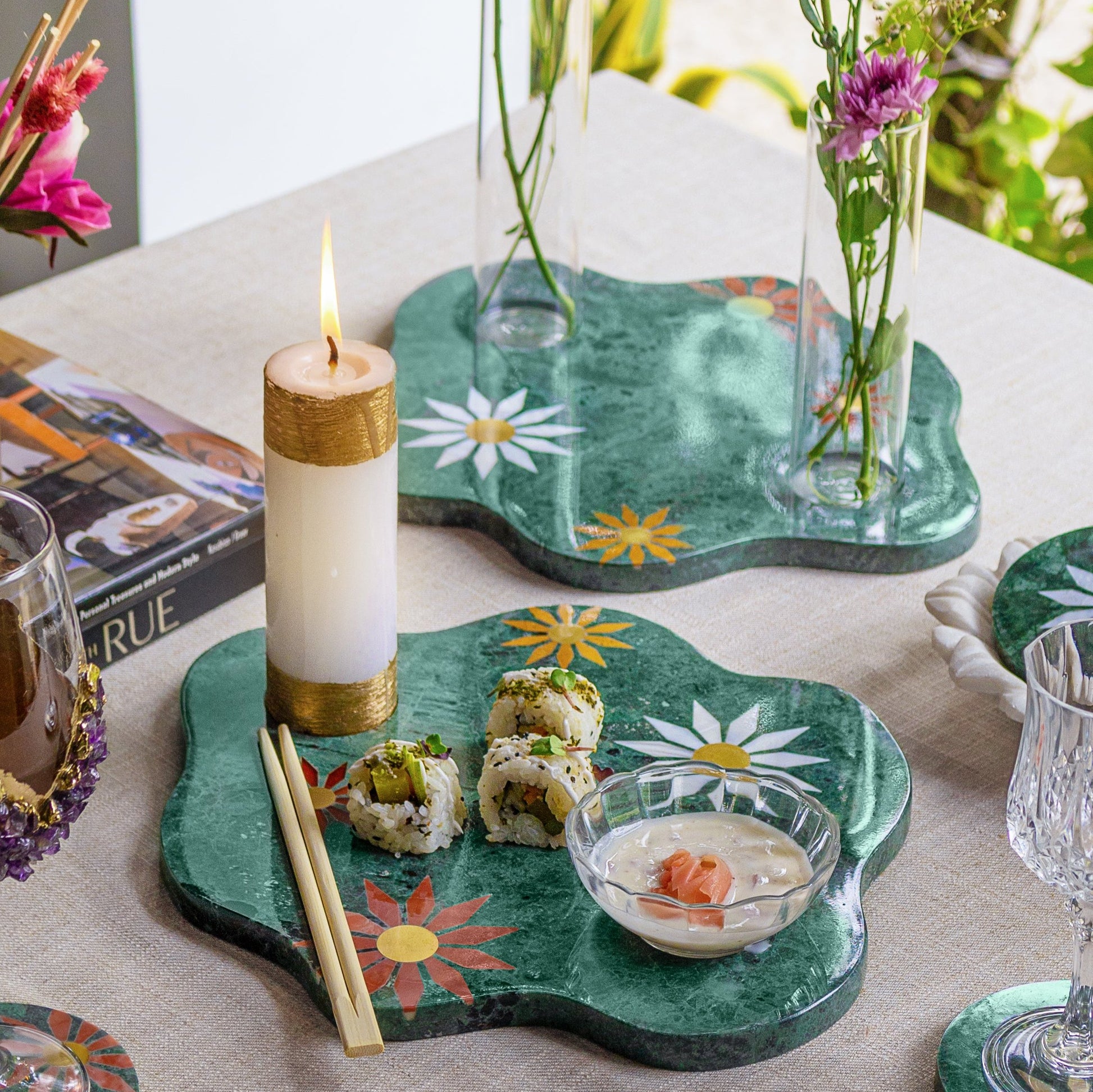 MAGNOLIA GREEN MARBLE VASE PLATTER