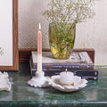 Complementing the urli is the matching Alabaster Marble Candle Holder, meticulously carved to showcase the natural beauty of the marble. This candle holder is designed to accommodate standard-sized candles, providing a warm and inviting glow to your living space. The sleek and minimalist design adds a contemporary flair, making it a statement piece for modern interiors.