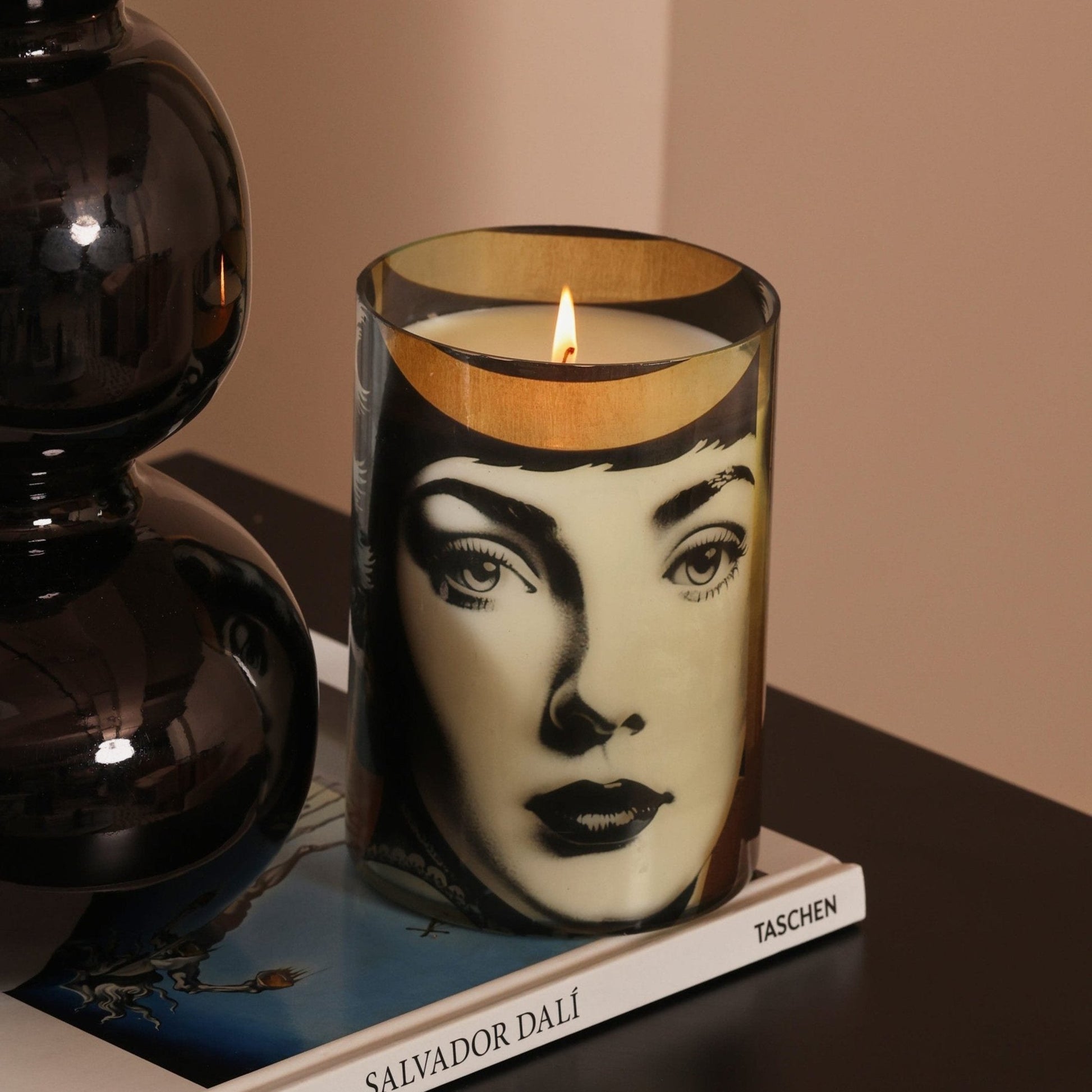 luminate your space with our Golden Face Lady Candle, a beautifully designed piece that combines elegance with functionality. The candle features a stunning golden face lady print, adding a touch of glamour and sophistication to any setting. Once the wax is burned down, the stylish jar transforms into a chic and versatile container for your storage needs. Crafted with high-quality wax for a clean and even burn, this candle not only enhances your ambiance with its warm glow but also serves as a sophisticated accessory for your home.