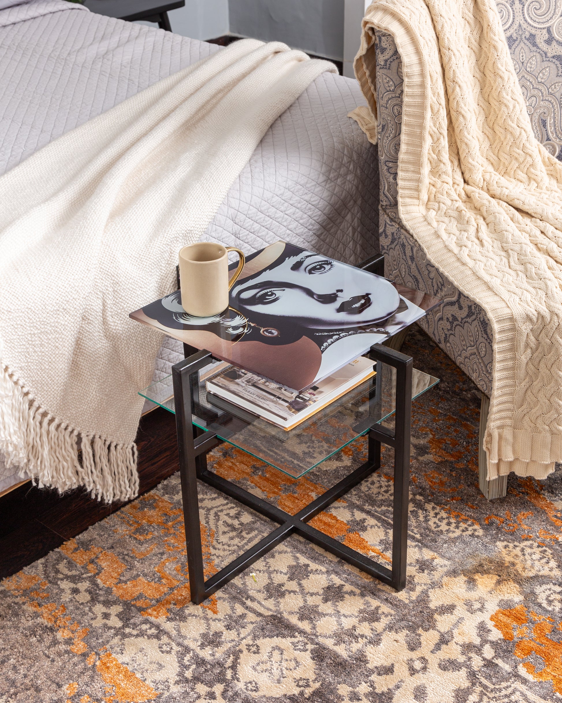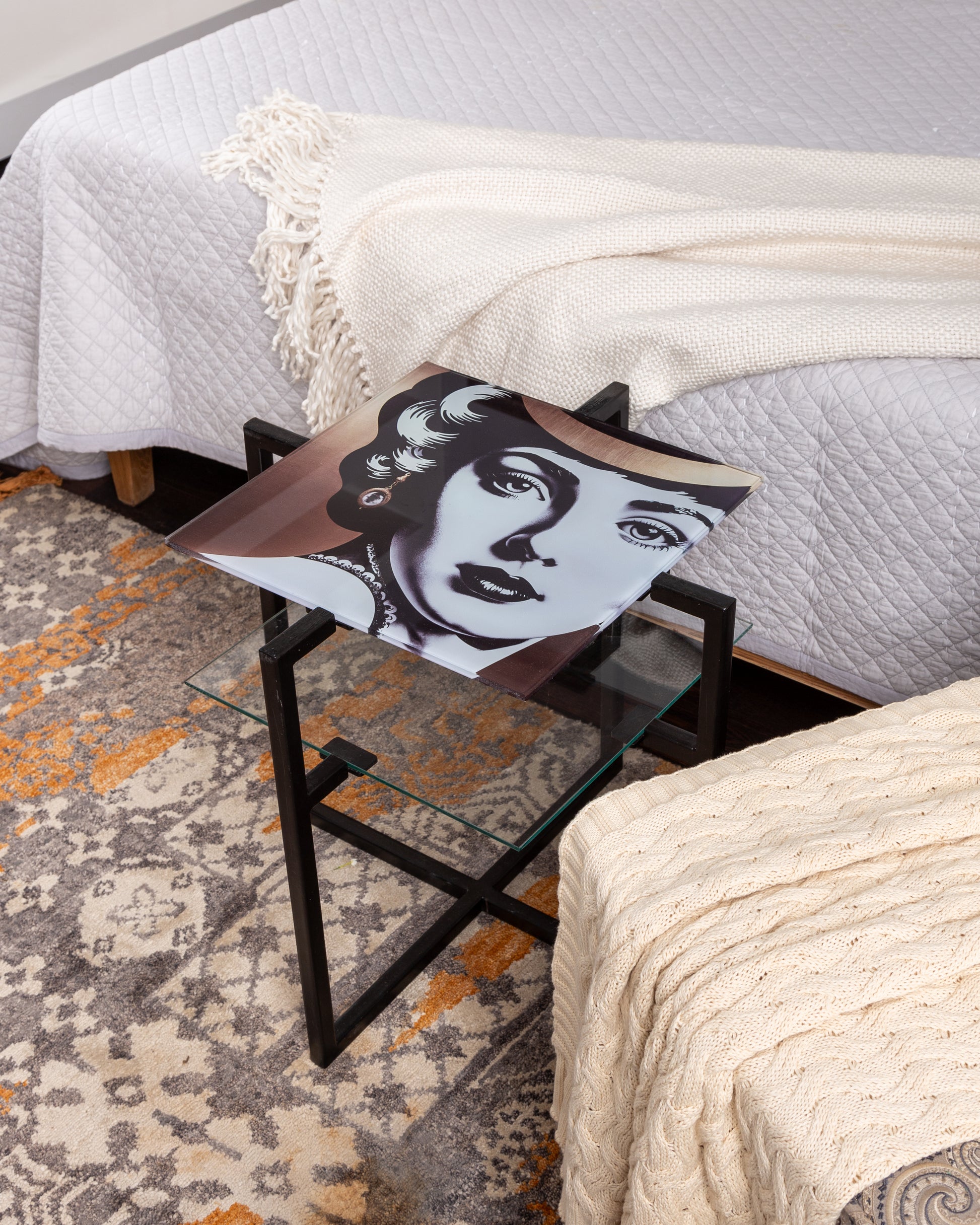 MONROE 1 - GLASS & METAL FACE PAINTED 2 LAYER ACCENT TABLE