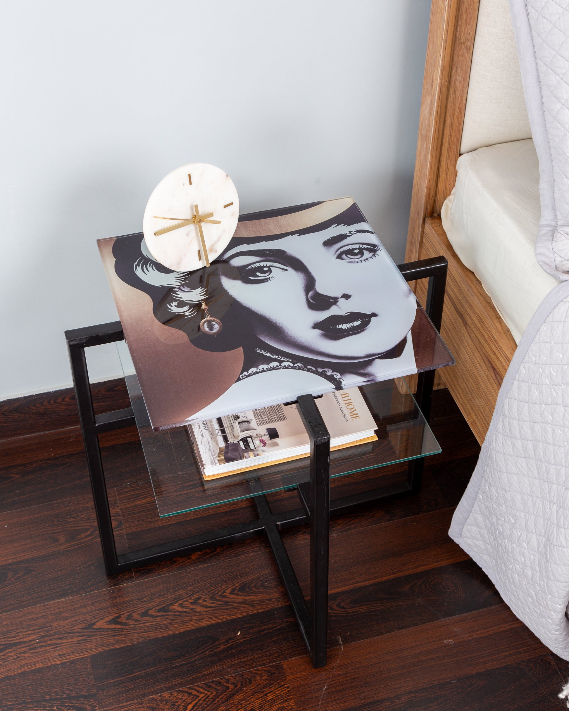 Now adorn furniture in your homes that The top layer features a stunning gold face of a lady, intricately detailed and artistically rendered to create a captivating focal point. This luxurious gold design adds a touch of glamour and sophistication to the table. The bottom layer is made of clear glass, offering a sleek and contemporary contrast that enhances the overall visual appeal. This combination of rich gold and transparent glass creates a versatile piece that seamlessly integrates with various decor styles