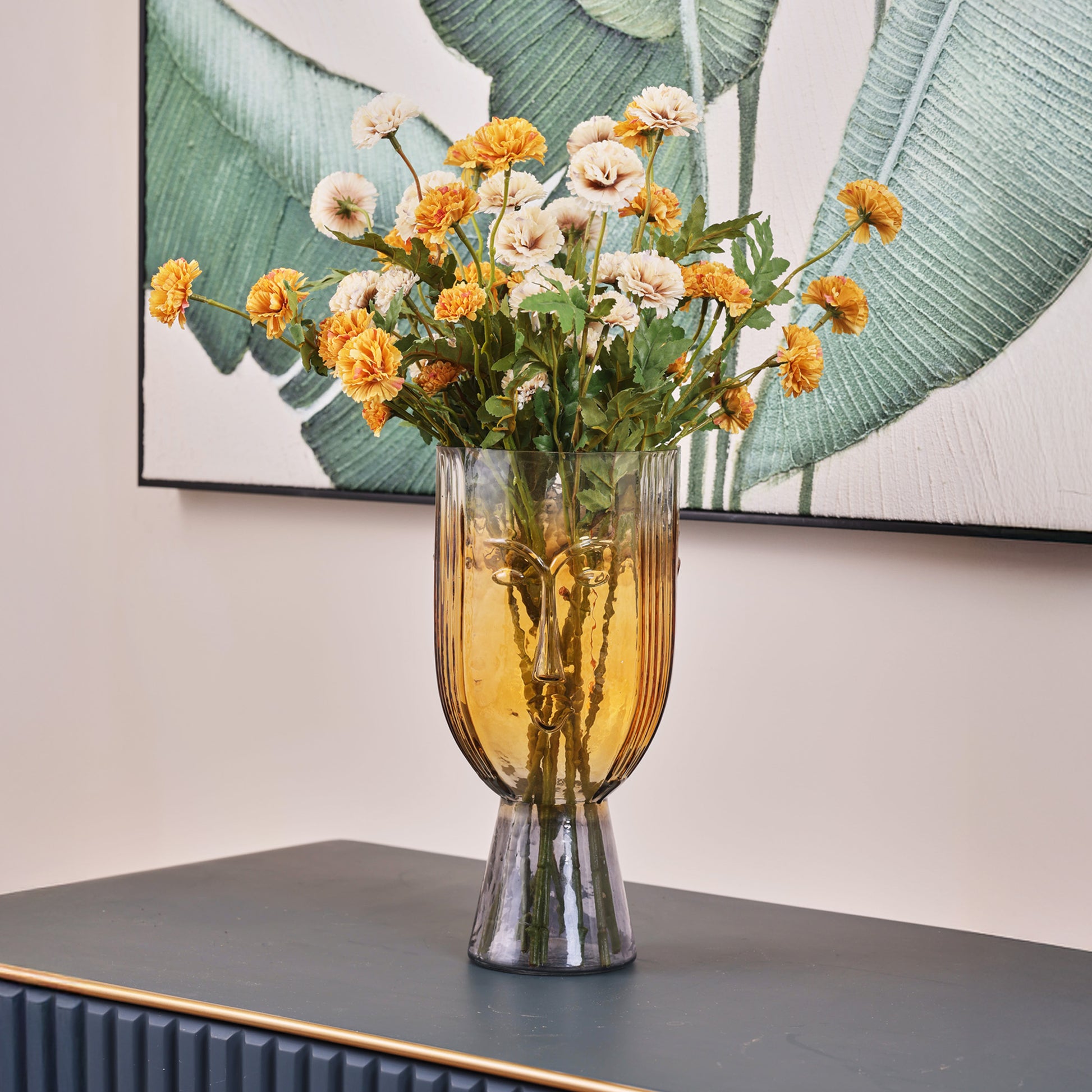 The Natsumi Arta Glass Face is a bold celebration of form and expression. This sculptural vase merges contemporary art with functional design, making it a powerful statement piece for any setting.