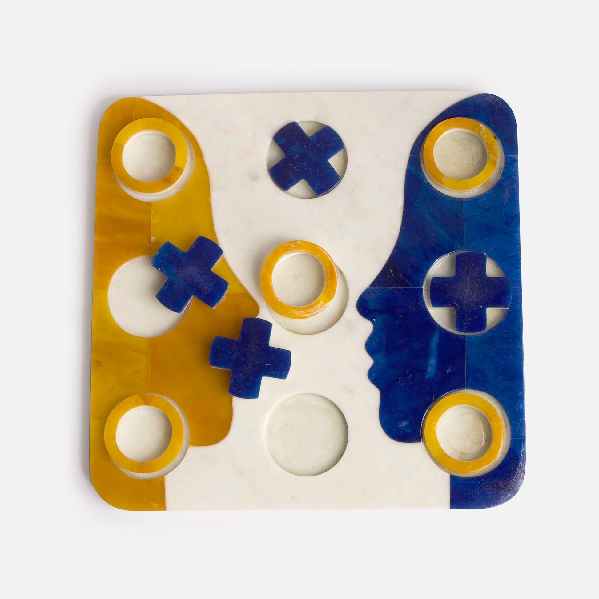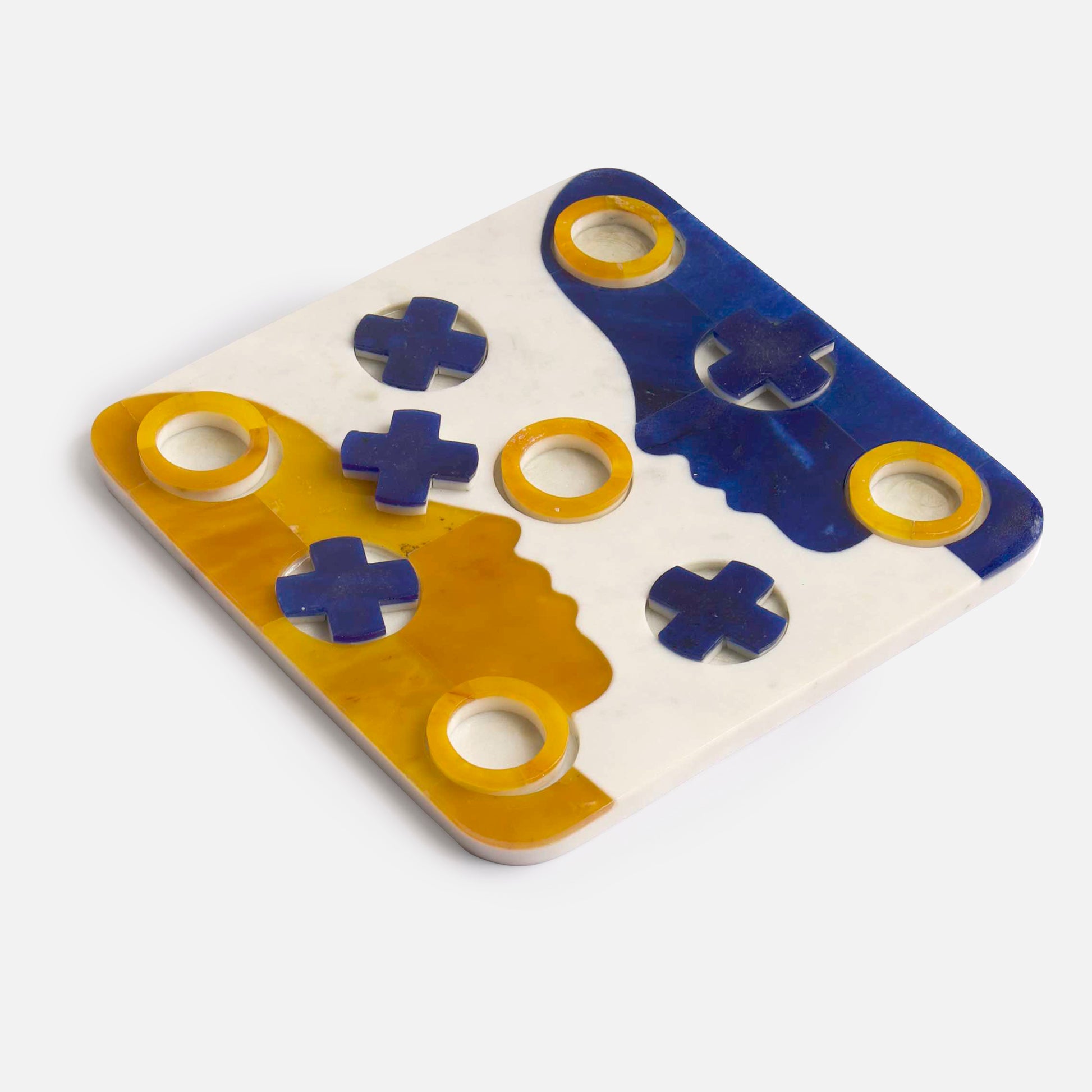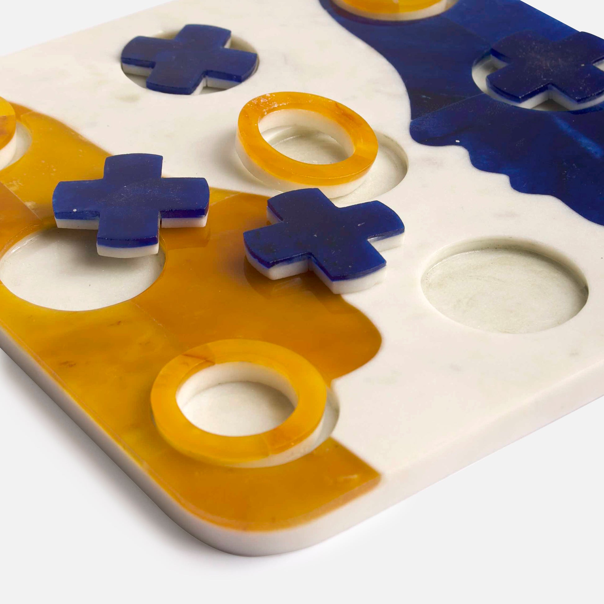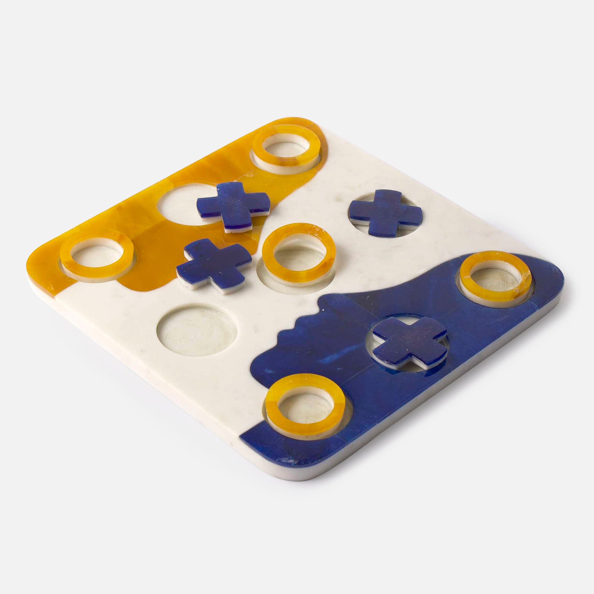 NATSUMI KNOTS - NATSUMI IVORYBLUE YELLOW MARBLE TIC TAC TOE GAME DECOR