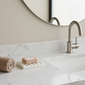 Defined by its clean geometry and sculptural ridges, the Ridge Block Soap Dish is handcrafted by Artisans in the Tajgarh district of Agra with imported Italian Stones. Bringing modern design to everyday functionality, Its textures showcase unique veining and depth, making each piece one-of-a-kind. The ridged rectangular form not only highlights its bold design but also allows for effective drainage, keeping your soap dry and lasting longer.
