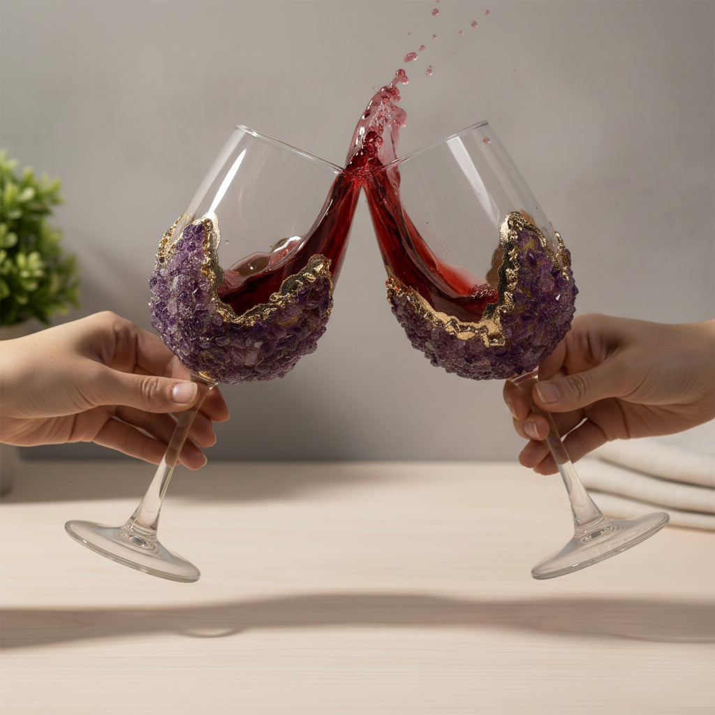 Indulge in luxury with our Amethyst Infused Wine Glass, designed to elevate your wine experience with a touch of sophistication. Each glass is exquisitely crafted and infused with genuine amethyst, adding a subtle, enchanting hue that captures and refracts light beautifully. The amethyst infusion not only enhances the visual appeal but also brings a sense of tranquility and elegance to your drinking ritual.