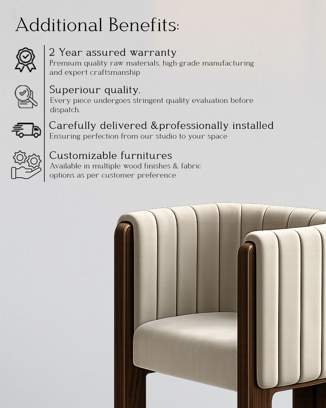 ✔ Solid wood legs showcasing natural grain and warmth