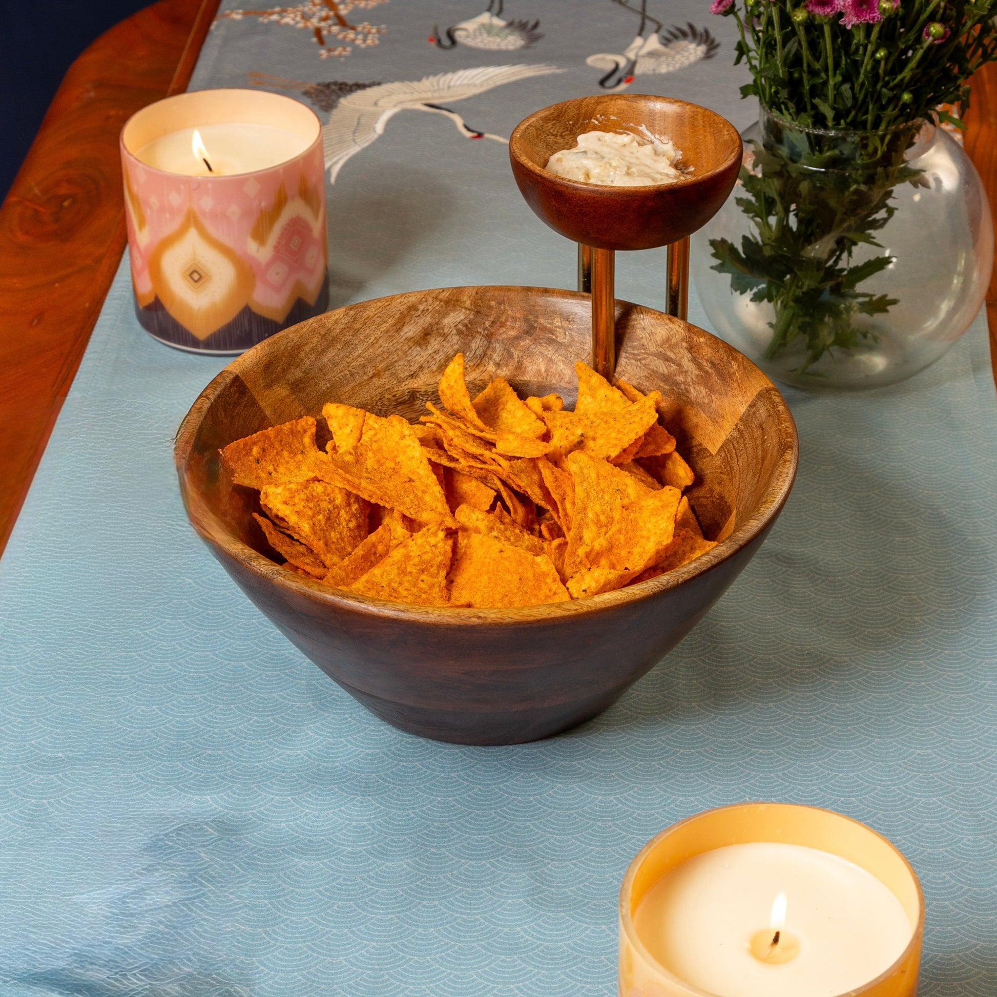 WOODLAND - NATURAL WOOD SERVING BOWL WITH DIP BOWL